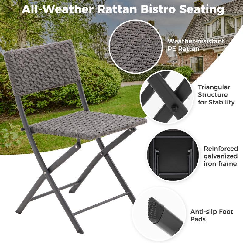 Enhance your outdoor living space with this stylish Rattan Bistro Folding Table Chair Set, designed for comfort, durability, and convenience. Perfect for balconies, gardens, rooftops, cafés, and outdoor relaxation areas, this set brings a cozy and modern bistro-style vibe to any environment.